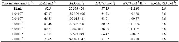 Table 5 Activation parameters of dissolution of steel in 1 mol/L HCl solution in absence and presence of 2-HBP