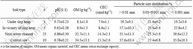 Most researches focused on the comparisons of contamination severity in soils around the contaminant sources. The results that total Cr concentrations decreased with distance increasing from the contaminating sources were reported in previous literatures[7-9], which were in agreement with our study. The observation that no direct relationship was apparent between the soil chromium content and the distance from the slag heap was also reported by LOYAUX-LAWNICZAK et al[10]. However, no literature was documented to investigate the contaminant severity under the slag heap due to the difficulty of sampling. In this study, the total Cr contents in soils under the slag heap were slightly lower than that in the vicinity of slag heap. This is because total Cr in surface soils under the slag heap is mainly from natural leaching and mobility from the chromium-containing slag. However, total Cr enriching in the topsoil in the vicinity of slag heap can be attributed to runoff, leaching and diffusing of Cr (Ⅵ) released from chromium-containing slag.