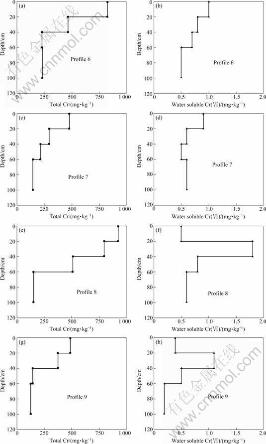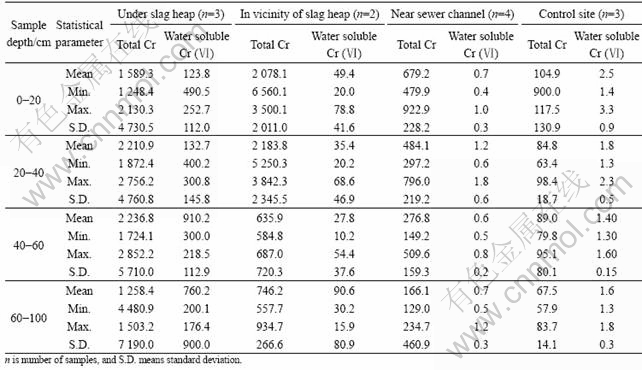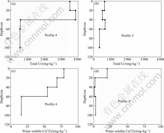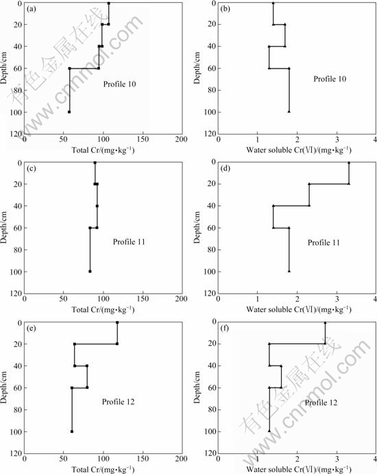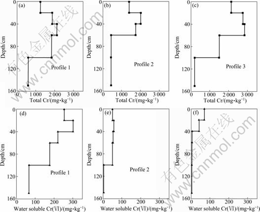 Table 3 Vertical distribution of total Cr and water soluble Cr in soil profiles(mg/kg)