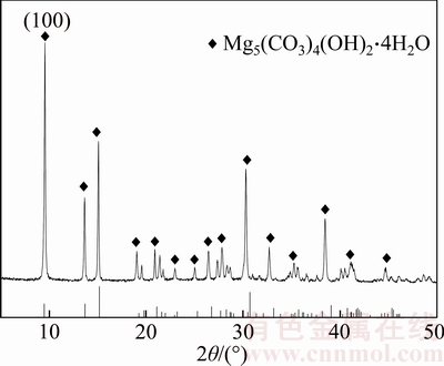 Figure 1 XRD pattern of Mg5(CO3)4(OH)2·4H2O