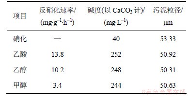 表2 不同电子供体下反硝化速率与反硝化之后粒径的变化