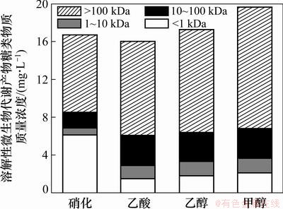 图5 硝化与反硝化中溶解性微生物产物相对分子质量分布