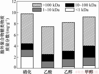 图9 硝化与反硝化中胞外聚合物糖类相对分子质量分级