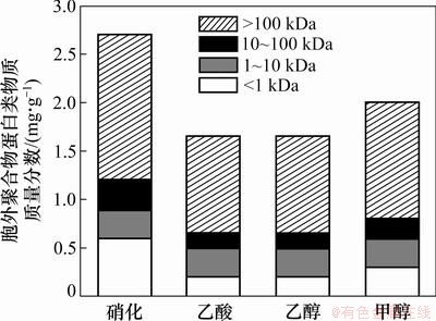 图10 硝化与反硝化中胞外聚合物蛋白类相对分子质量分级