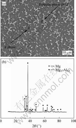 Fig.1 Metallographic microstructure(a) and XRD pattern(b) of AZ91D die-cast magnesium alloy