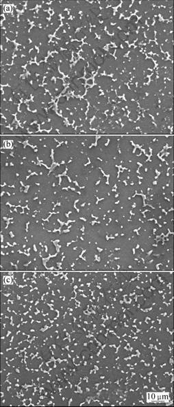 Fig.2 SEM images of AZ91D microstructure heat-treated at 300 ℃ for 20 h(a), 40 h(b) and 60 h(c)