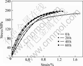 Fig.3 Stress—strain curve of AZ91D die-cast after heat-treated at 300 ℃ for different time