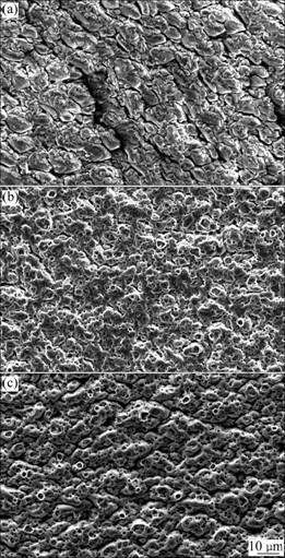 Fig.3 SEM images of EB-PVD TBCs: (a) Original; (b) Irradiated at 100 A/cm2; (c) Irradiated at 200 A/cm2
