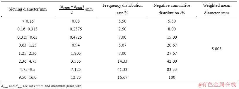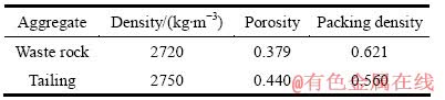 在此次模拟中,选用金川矿区的废石与尾砂作为材料,两种骨料的物理参数及粒径组成如表1~3所列。