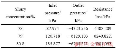 Table 5 Piping resistance loss of slurry with different concentrations at slurry flow rate of 105 m3/h