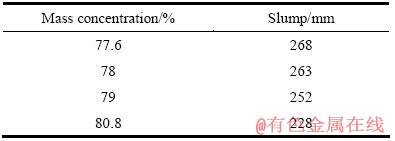 Table 8 Slump of waste rock-tailing slurry at mass ratio of waste rock and tailing of 6:4