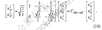 首先将采样得到的三相电网正序基波电压和三相电流信号进行α-β变换,得到: