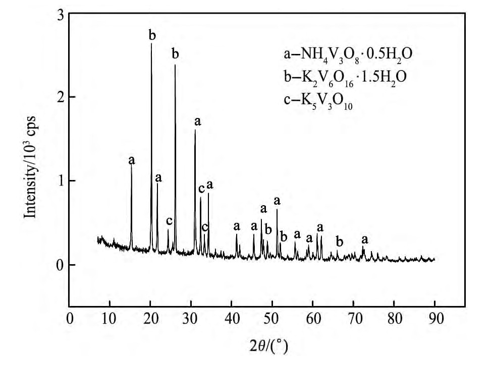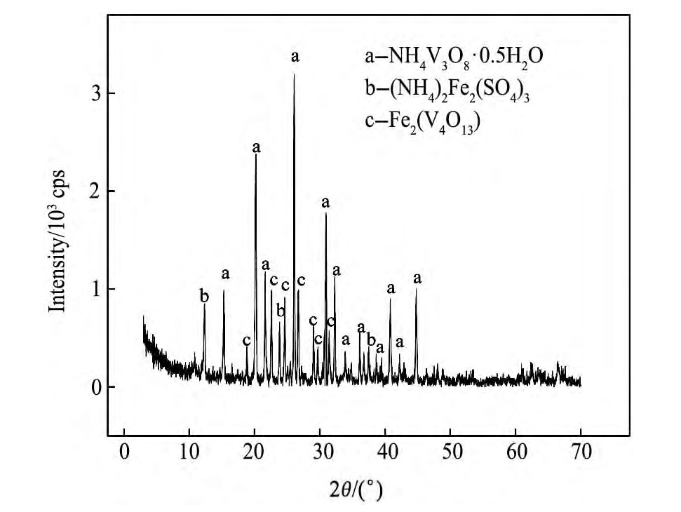 图3 Fe3+离子浓度为7 g·L-1的富钒液沉钒所得APV产品XRD分析Fig.3 XRD pattern of APV from vanadium precipitation by va-nadium-rich liquid with 7 g·L-1Fe3+