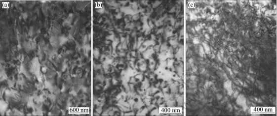Fig.2 Morphologies of dislocation cell of LCF in EA356 alloys: (a) ?εt/2=0.7%; (b) ?εt/2=0.5%; (c) ?εt/2=0.3%