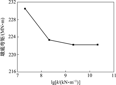 图9 弹簧刚度与墩底弯矩的关系(El-centro)
