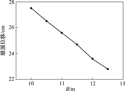 图12 基础宽度与墩顶位移的关系(El-centro)