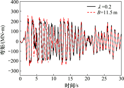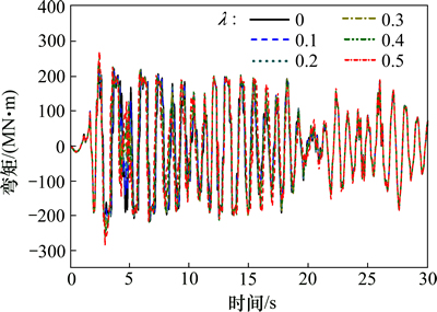 Fig. 14 Comparison of moment time-history of pier base at different λ