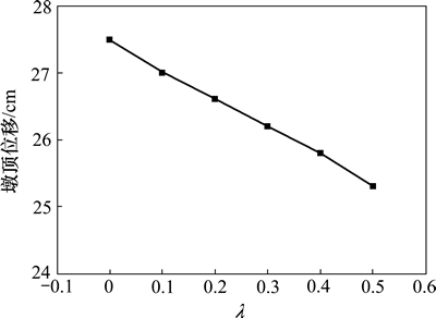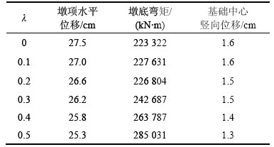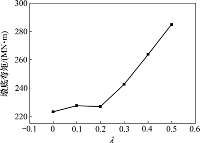 3) 墩顶位移随λ增大而线性减小,摇摆桥墩的耗能能力随λ的增大而增大。墩底弯矩受λ的影响较复杂,当λ小于0.2时其对墩底弯矩的影响较小,λ介于0.2~0.5时墩底弯矩随λ的增大而增大。