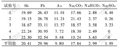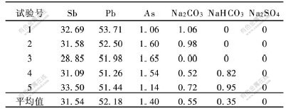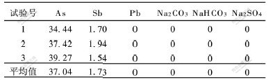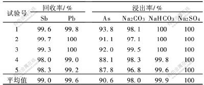 表 3 锑、铅的回收率和砷、碱的浸出率