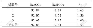 把脱锑浸出液加入到反应釜内,通入二氧化碳气体,在40 ℃和中性pH值条件下搅拌脱碱,取过滤液分析Na2CO3和NaHCO3含量,确定脱碱工序的终点;过滤后得到的碳酸盐返回锑冶炼,脱碱液进入脱砷工序。