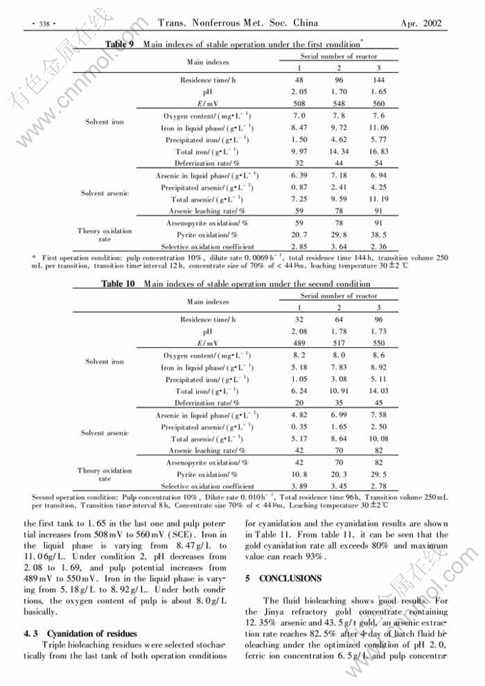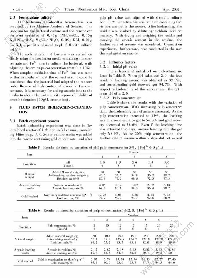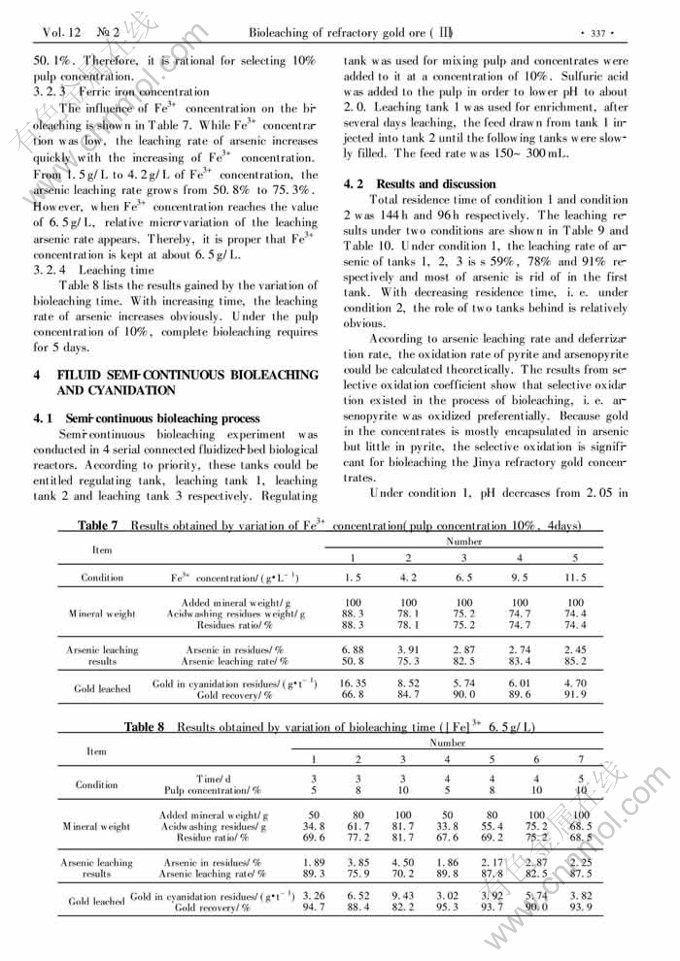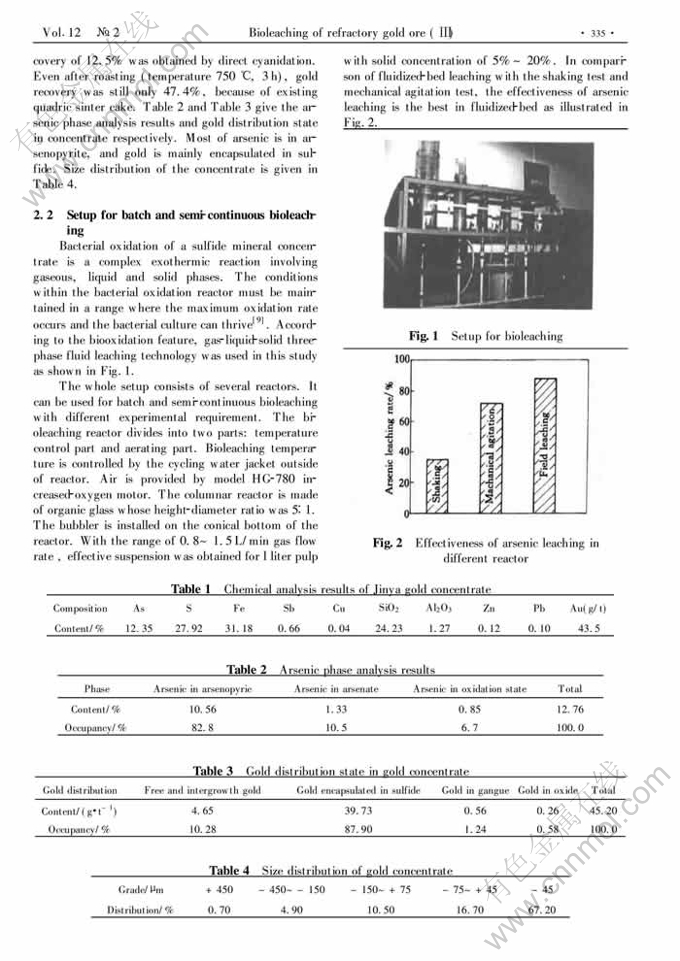 Key words:refractory arsenical gold concentrate; fluid-bed reactor; semi-continuous bioleaching