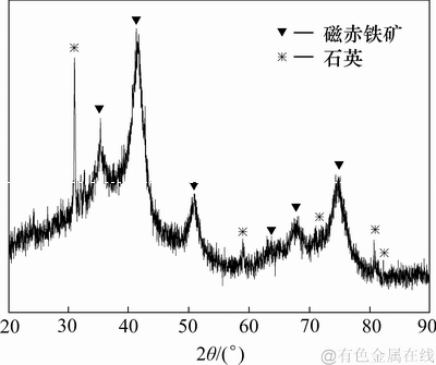图2所示为MPA的X线衍射测定结果。将图谱中出现的特征衍射峰与各矿物标准XRD图谱进行比对,可得MPA的主要磁性成分为磁赤铁矿即γ-Fe2O3。本实验原材料为取自除铁锰水厂生物滤池的反冲洗铁泥,其主要成分为无定形的羟基氧化铁并掺杂着其他水处理过程中截留去除的杂质[13],推测磁性物质形成过程如下:在溶剂热反应过程中,羟基氧化铁作为铁源,反应釜中形成的高温、高压密闭环境使乙二醇作为还原剂还原部分三价铁,同时在醋酸钠造成的碱性环境下二价铁与未反应的三价铁生成磁铁矿,在后续干燥过程中磁铁矿在氧化条件下经次生作用生成磁赤铁矿。反应式如下: