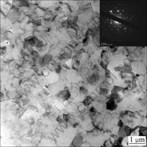 Fig.5 shows TEM image and diffraction pattern of the specimen that is of 75% reduction by improved ASR Ⅱ method and annealed at 150 ℃ for 1 h. It is apparent that the grain size is much smaller than 1 μm. The average grain size of this asymmetrically rolled commercial aluminium is about 0.5 μm. This indicates that the grain size of the pure aluminium is able to be refined to nano-scale by the improved ASR and seems to be a promising approach of applying the SPD in industry.