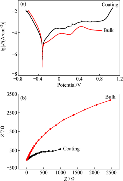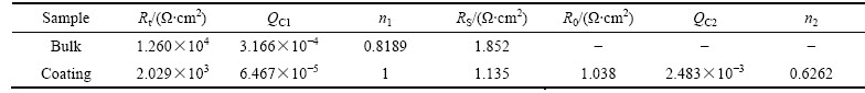 Table 2 EIS fitting results of bulk amorphous alloys and amorphous coating in 0.5 mol/L H2SO4