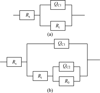 Fig. 5 Equivalent circuit diagrams of bulk amorphous alloys (a) and amorphous coatings (b)