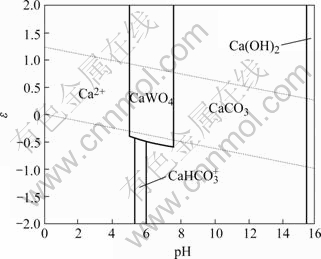 Fig.1 ε—pH diagram for Ca-W-C-H2O system ([W]=[Ca]=10-3 mol/L, [C]=1mol/L, 25 ℃)