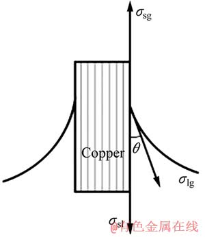 根据杨氏方程,当液态钎料在Cu片上的润湿达到平衡时(见图4[4]),有