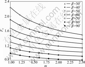 Fig.4 Effect of nonlinear parameter m on safety factor Fs for different slopes with β varying from 30? to 90?