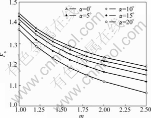 Fig.9 Effect of nonlinear parameter m on safety factor Fs for different slopes with α varying from 0? to 20?
