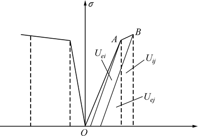 在岩石常规三轴加载试验中,试验机在轴向方向对岩石作正功,侧向方向围压对岩石作负功。假设该物理过程与外界没有热交换,即为封闭系统。因此,根据热力学第一定律在整个试验过程中岩石的应变能U可表示为: