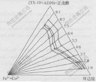 图 2 不同浓度的Fe3+和Co2+溶液体系微乳液相图