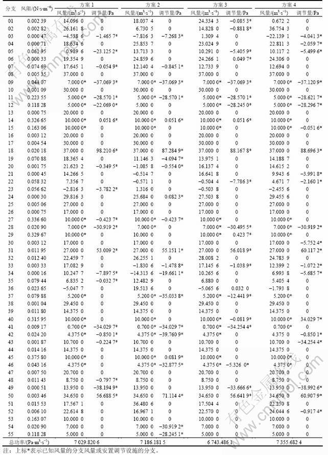 Table 2 Results of ventilation optimization and adjustment on simple ventilation networks