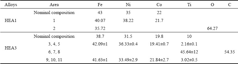 Table 1 Chemical compositions of bulk (Fe43Ni35Co22)1-xTix HEAs analyzed by EDS/BSE (mole fraction, %)