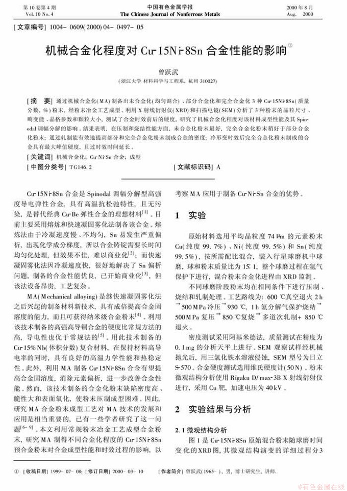 关键词:机械合金化; Cu-Ni-Sn合金; 成型