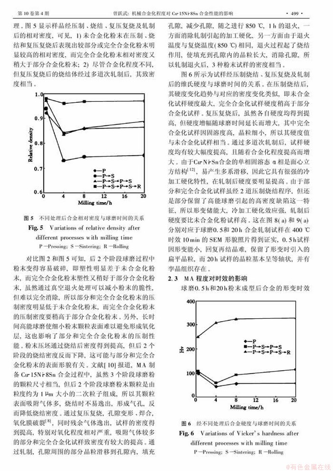 机械合金化程度对Cu-15Ni-8Sn合金性能的影响
