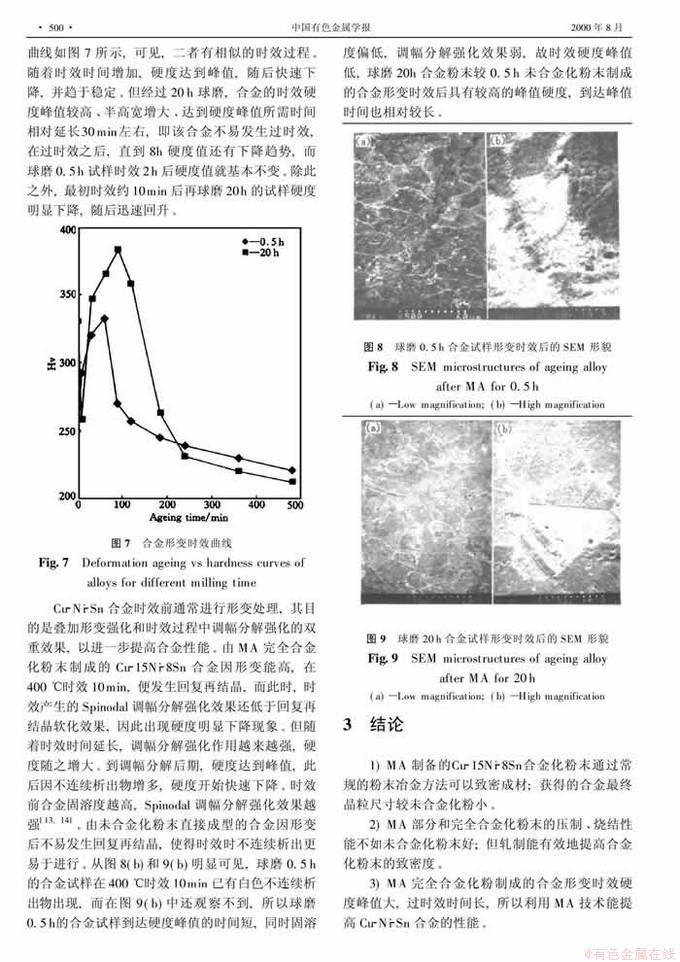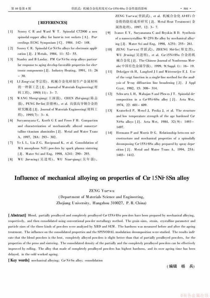 Key words:mechanical alloying; Cu-Ni-Sn alloy; consolidation