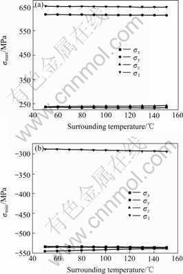Fig.9 Effect of surrounding temperature on maximum and minimum stress