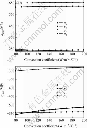 The convection coefficient was changed from 80 to 200 W/(m2·℃), Fig.10 shows its effect on stress distribution.