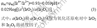 考虑到Ir3+/Ir4+氧化还原电对是可逆的,导入能斯特方程可以得到: