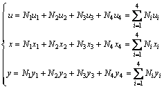 用ui表示四边形单元上的电场或磁场强度,则电磁场值与子单元上的坐标可以表示为