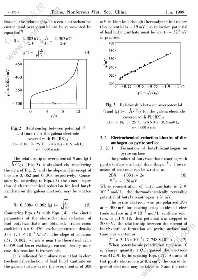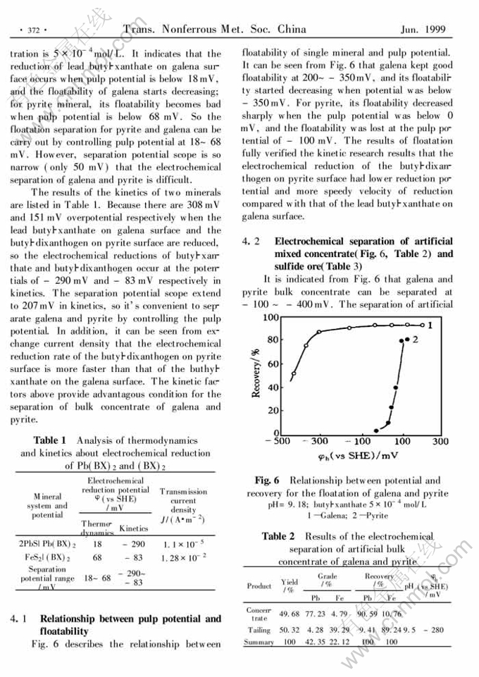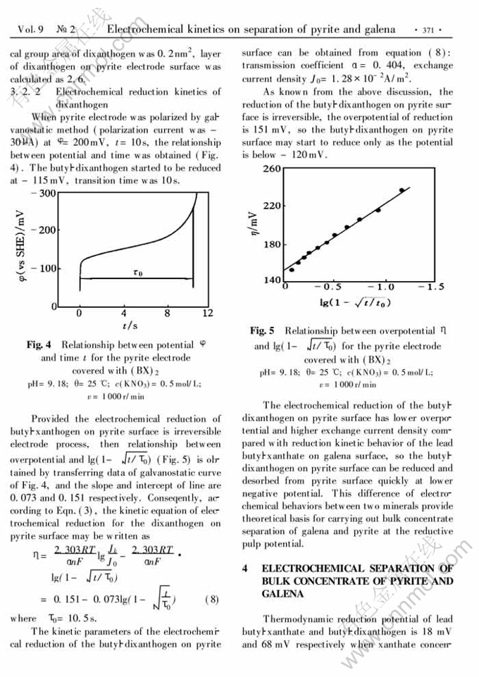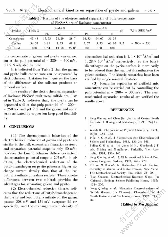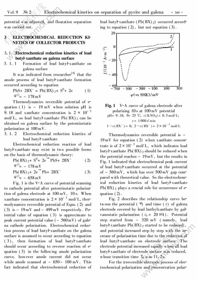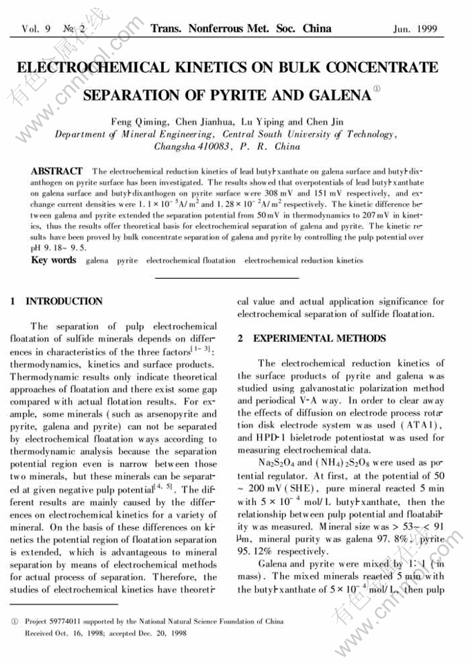 Key words:galena ,pyrite, electrochemical floatation ,electrochemical reduction kinetics