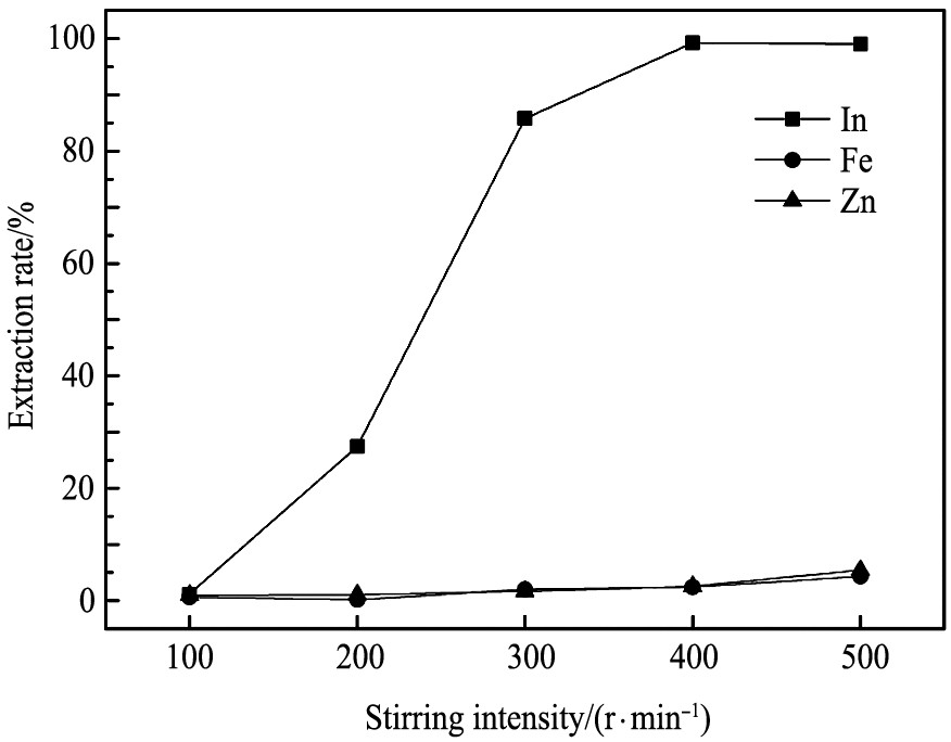 Fig.5 Effect of stirring intensity on extraction rate of metals in simulation solution