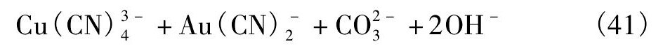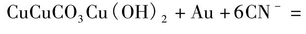 此外,孔雀石氰化溶解Cu CO3Cu( OH)2( Ⅱ) /Cu( CN)34( I) 还原电势远高于Au( CN)2( I) /Au ( 0) 氧化电势,碱性无氧气环境下孔雀石与金在氰根作用下可发生如下反应: