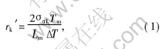 基底、 晶核与熔体之间的作用关系如图5所示。 设铝熔体中存在一个正方形的基底β, 基底上附着一个球冠形的晶核α, θ为晶核与基底的接触角, σαL为晶核与液相之间的界面能, σαβ为晶核与基底之间的界面能, σβL为基底与液相之间的界面能, Lm为熔体结晶潜热, Tm为临界结晶温度, ΔT为结晶过冷度。 根据相变系统Gibbs自由能及形成稳定晶核的基本条件, 非均质形核的临界形核半径为: