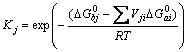 为 j 从属组分的标准吉布斯生成自由能。