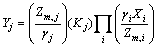 由17个独立组分产生的30个从属组分的30个独立反应(见表3)的平衡常数Kj可用式(3)表示: